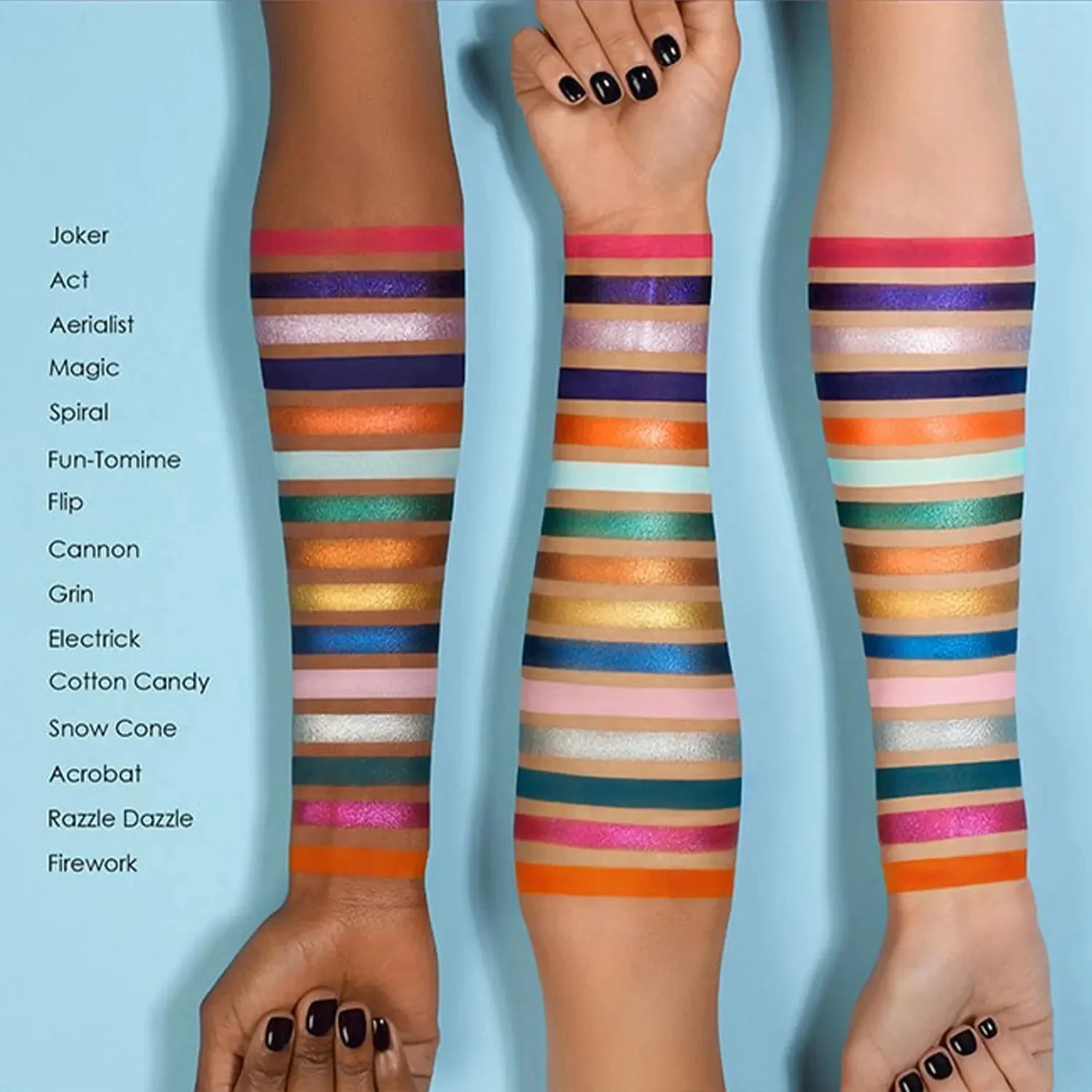 Inspired by the electric energy of the circus, CIRCO LOCO EYESHADOW PALETTE offers Natasha’s signature buttery formulas in shades ranging from crisp pastels to highly vibrant metallics & pearls.